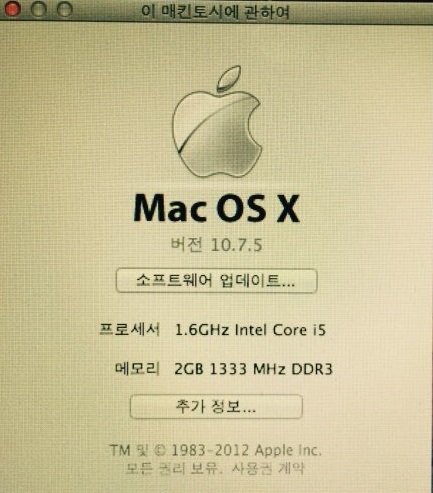 1.6GHz Intel Core i5, 2GB 13333 MHz DDR3, 스크래치 전혀 없고 깔끔, 사이클수 97